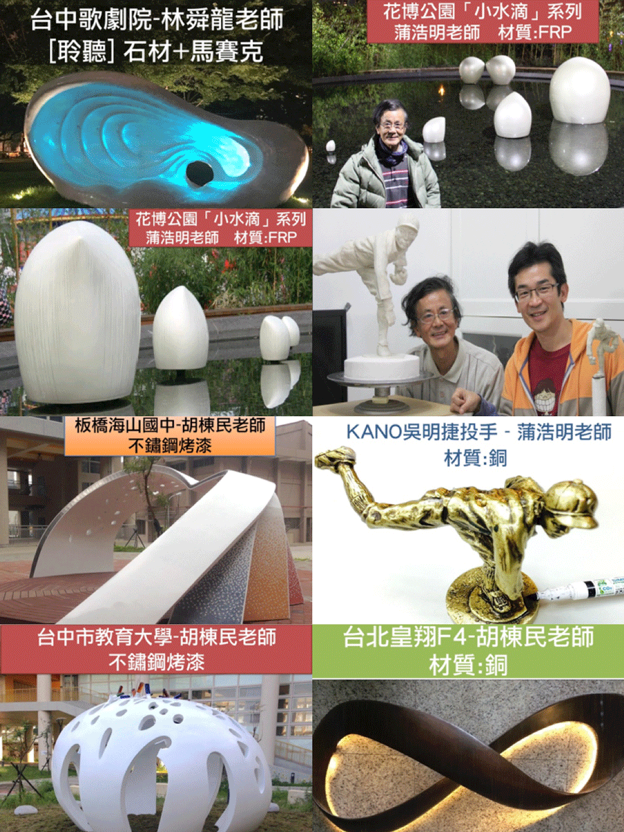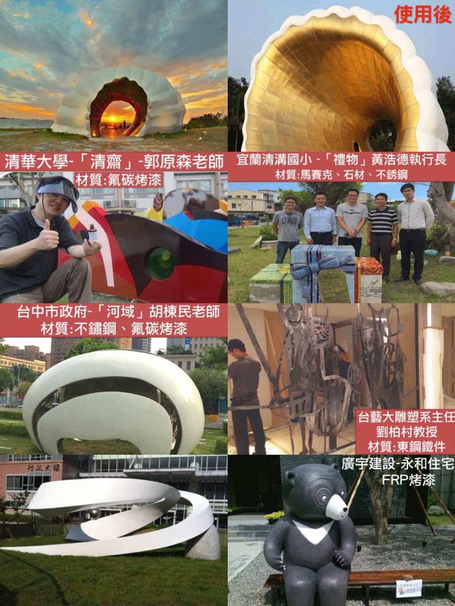 奇美博物館「眾神」雕像、楊奉琛理事長「風之翼」、蒲浩明老師 「花博小水滴散步」、林舜龍老師 台中歌劇院「聆聽」、胡棟民老師台中市政府「河域」、W Hotel...都啟用「超級防護牆」